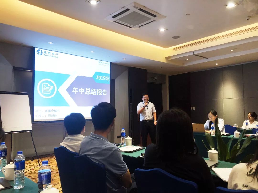 首先由董事會秘書周威迪先生做上半年的工作總結(jié),周董秘表示,在上半年我們完成了多項重點工作,再一次參加了上海慕尼黑電子展,新建廠房也順利完成封頂儀式。 下半年,新廠房也將進入驗收及裝修階段,同時我們將推行數(shù)字化戰(zhàn)略,智能高效的完成更高的產(chǎn)值產(chǎn)能!進一步開闊和拓展現(xiàn)有市場!穩(wěn)穩(wěn)當當走好每一步,保持原有優(yōu)勢,正面迎接新的挑戰(zhàn)!