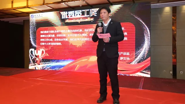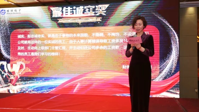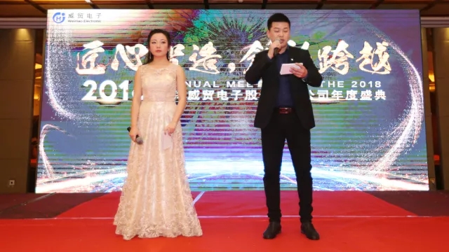 本次年會由威貿(mào)新星,人事行政部張惠敏,品質(zhì)管理部杜宏見主持。兩人是第一次作為主持人登上威貿(mào)年會的舞臺,在真摯的新年祝福與熱烈的掌聲中,威貿(mào)電子2018年度盛典正式開始。