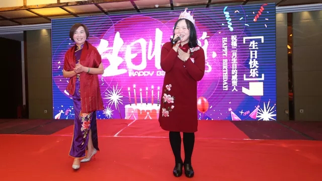 威貿(mào)電子副總經(jīng)理高建珍女士上臺主持本次生日會,帶頭為2月生日的員工送上了最美好的祝愿。當臺上臺下祝福生日的歌聲融匯成一片時,這一刻無疑是最溫馨,最能體現(xiàn)“威貿(mào)一家人”企業(yè)風格的瞬間。