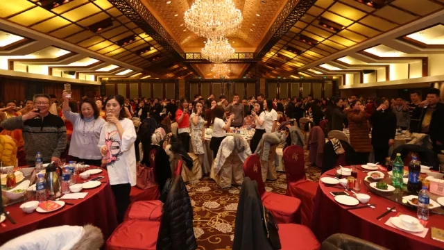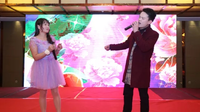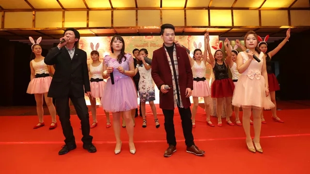 晚宴開始前,周總、高總、周董秘、蔡副總帶領(lǐng)各部門領(lǐng)導(dǎo)上臺祝酒。周總為大家送上了新年祝詞。同時我們也感恩周總、高總給予了我們一個美好的工作環(huán)境。在無盡的祝福和掌聲中,我們迎來了晚會的第一個節(jié)目: